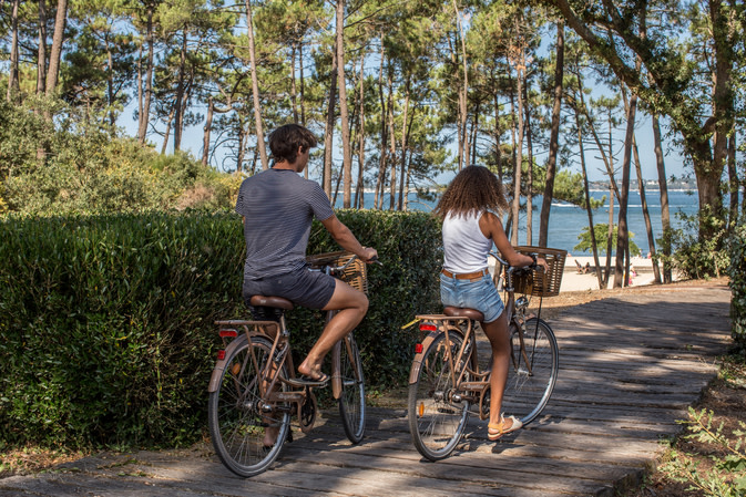 Cycle along shaded trails through pine woods, soaking in stunning vistas of Pereire Beach and Arcachon Bay.