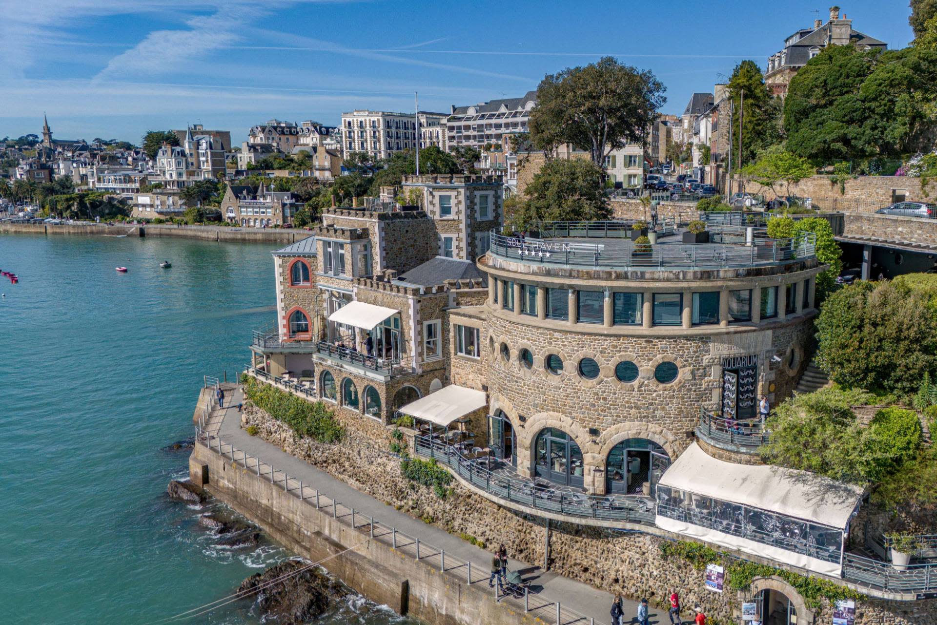 This elegant hotel is designed for relaxation, featuring a heated pool, an array of spa treatments, and an on-site Michelin-starred restaurant. Converted from an old aquarium, it retains a charming marine theme in its decor. Perched above the Claire de la Lune promenade and close to the beach and town centre, it puts you in the perfect spot to experience everything Dinard has to offer.