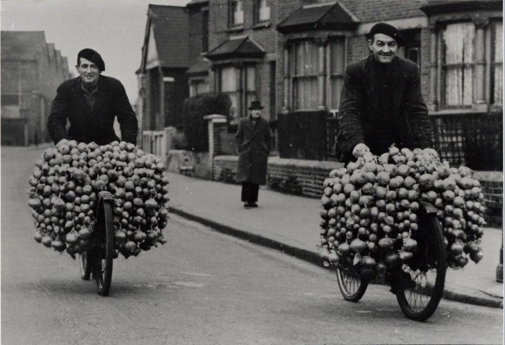 At first the onion braids were worn with a stick on the shoulder, and then on a bicycle. They were sold door to door.